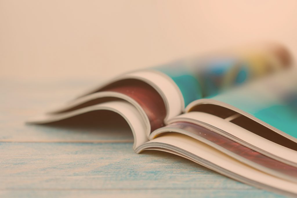 Stack magazines on wooden table